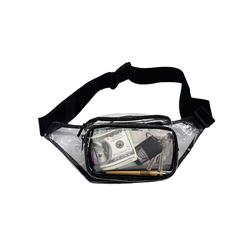 Riñonera transparente de PVC para hombre y mujer, bolsa de deporte al aire libre de viaje con logotipo OEM, modelo MB MB192, cremallera metálica de 29x16x17cm
