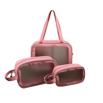 Impermeable moda colorido 3 tamaño impreso Ventana de PVC transparente con cuero de PU ahueca hacia fuera cosmético playa bolsa maquillaje cremallera bolsa